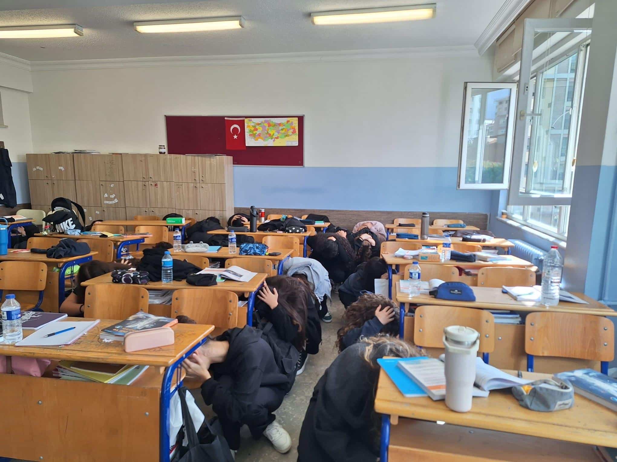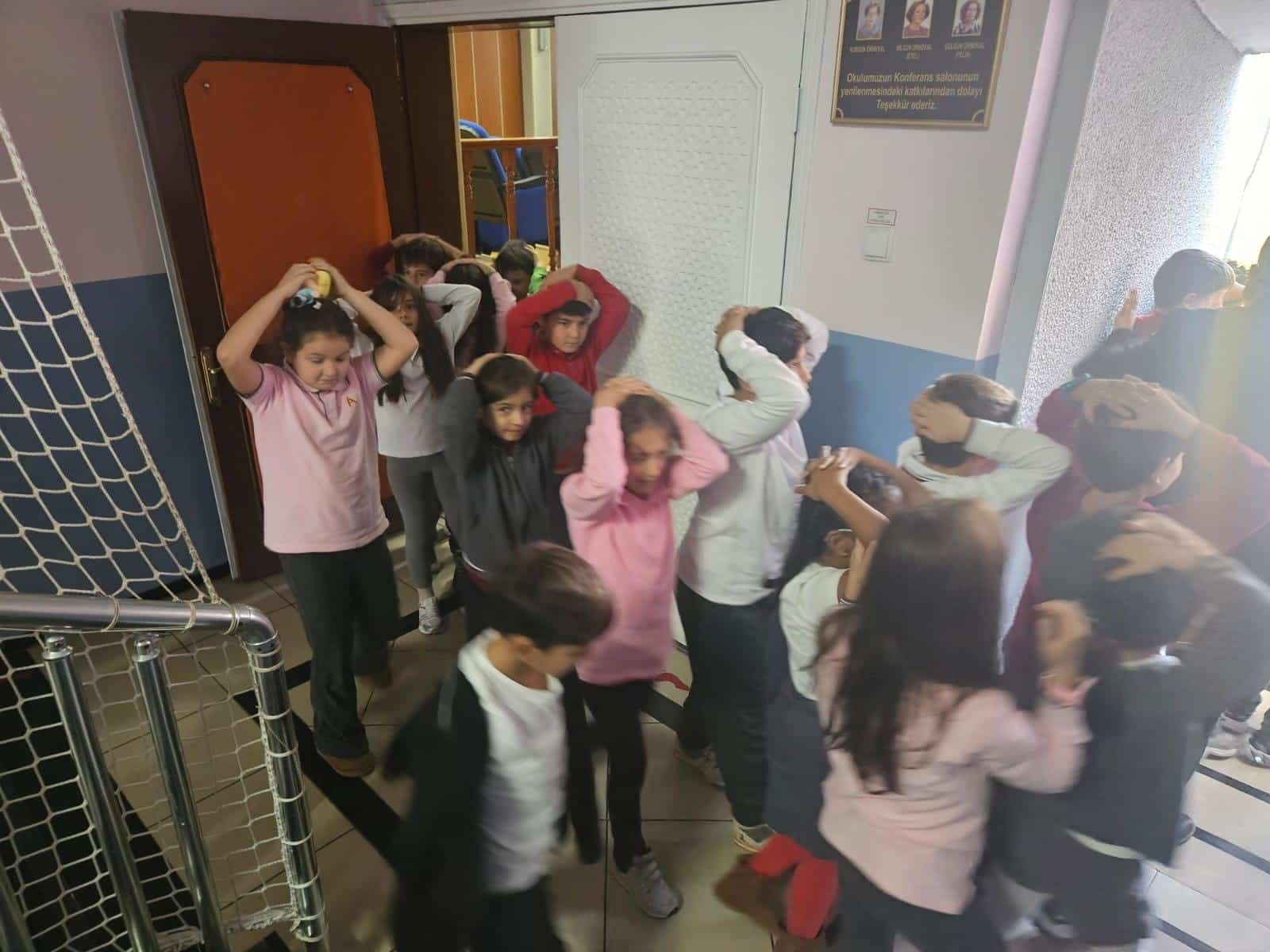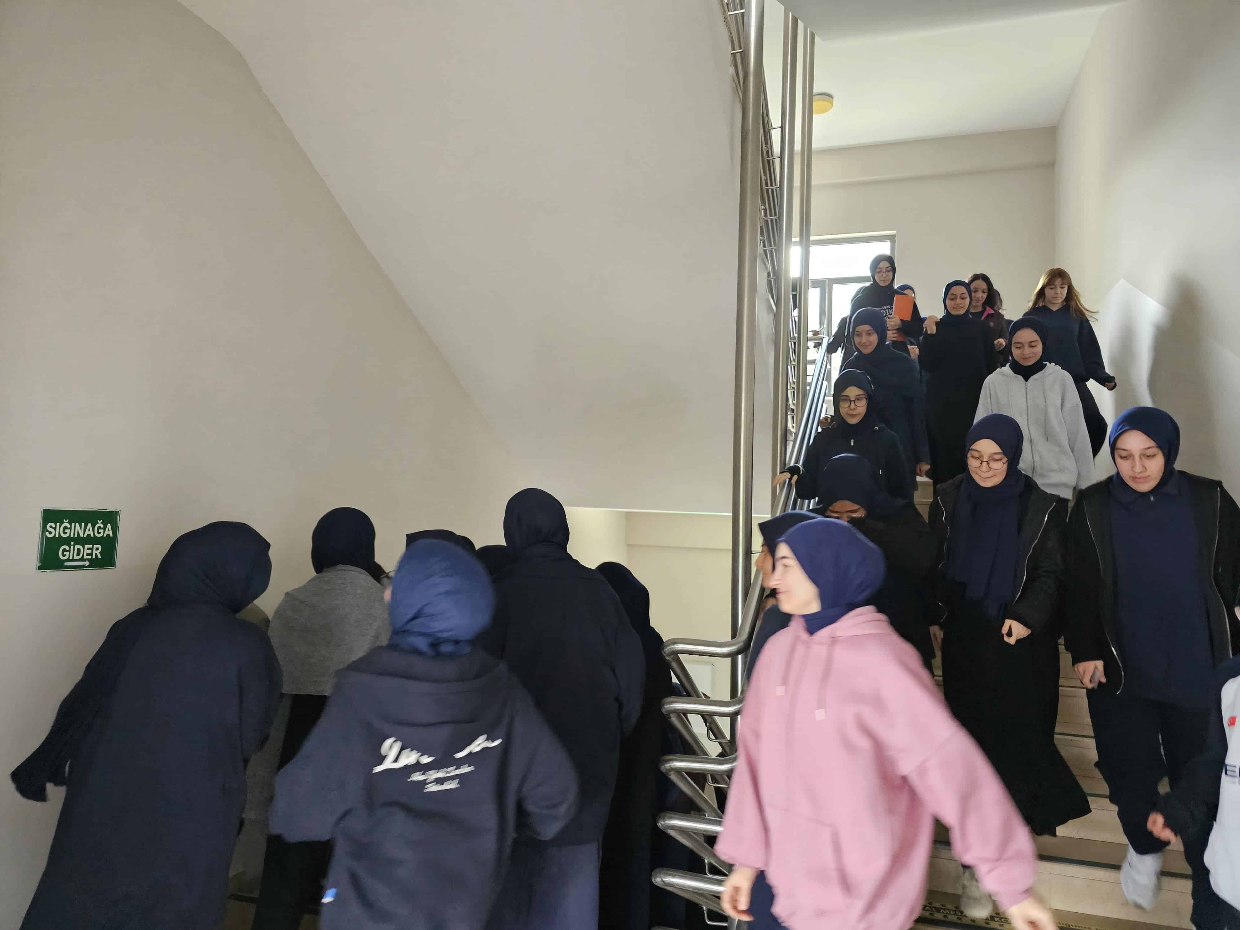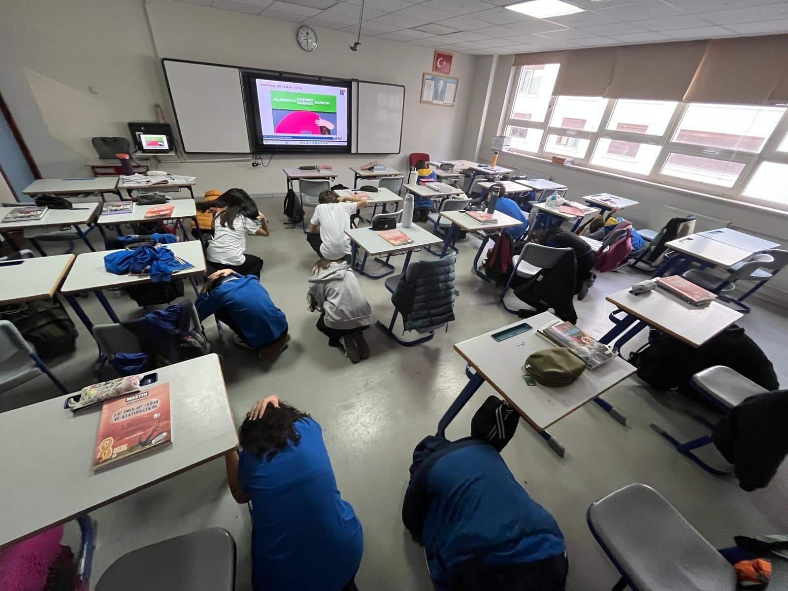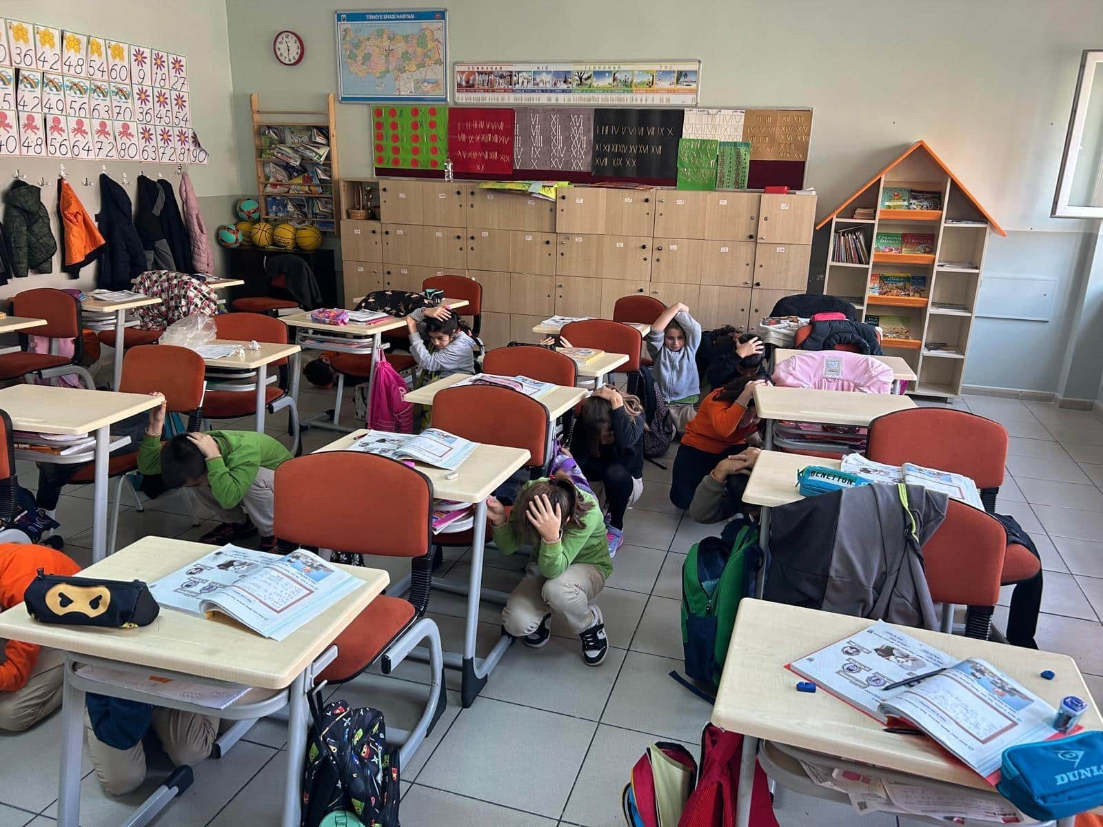 Öğrencilerimiz, afet öncesinde, sırasında ve sonrasında alınması gereken önlemler hakkında bilgi edinirken; güvenli davranış biçimlerini uygulamalı olarak deneyimledi.