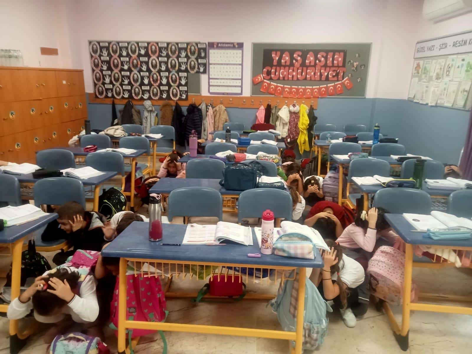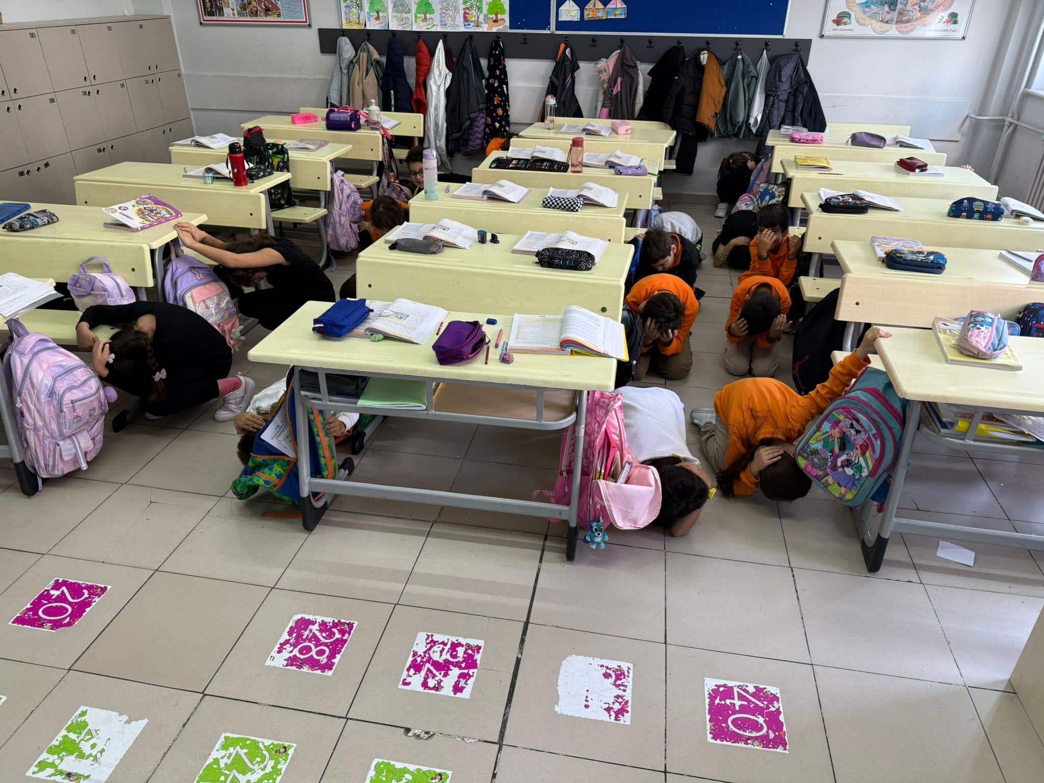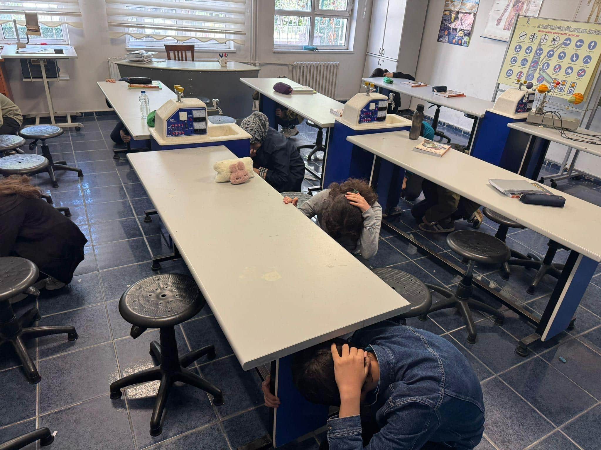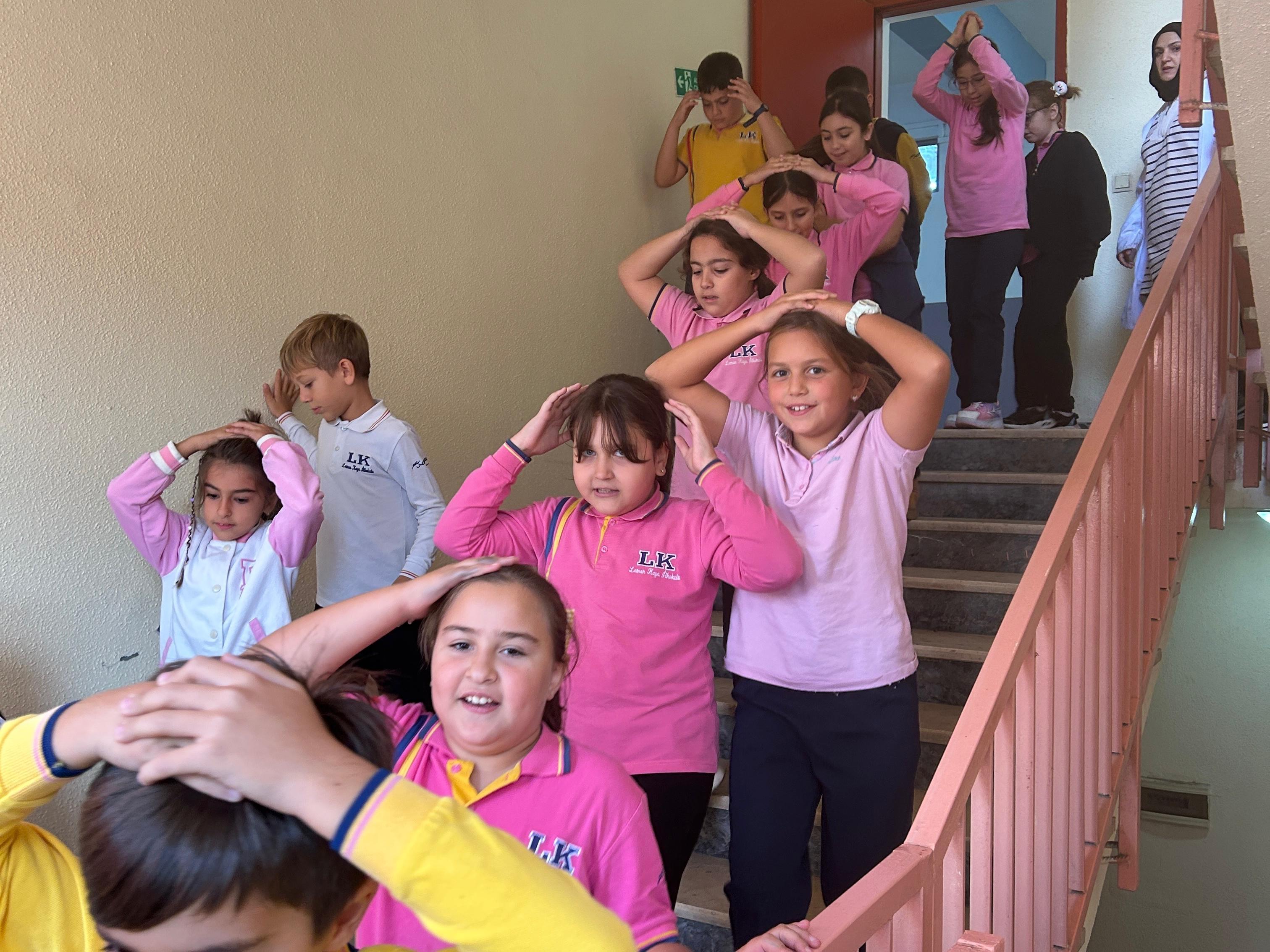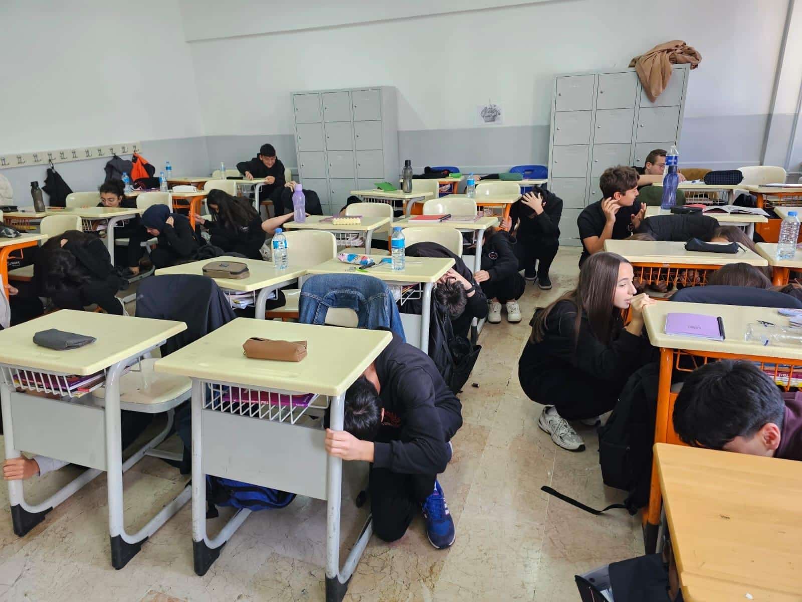 Öğrencilerimiz, afet öncesinde, sırasında ve sonrasında alınması gereken önlemler hakkında bilgi edinirken; güvenli davranış biçimlerini uygulamalı olarak deneyimledi.